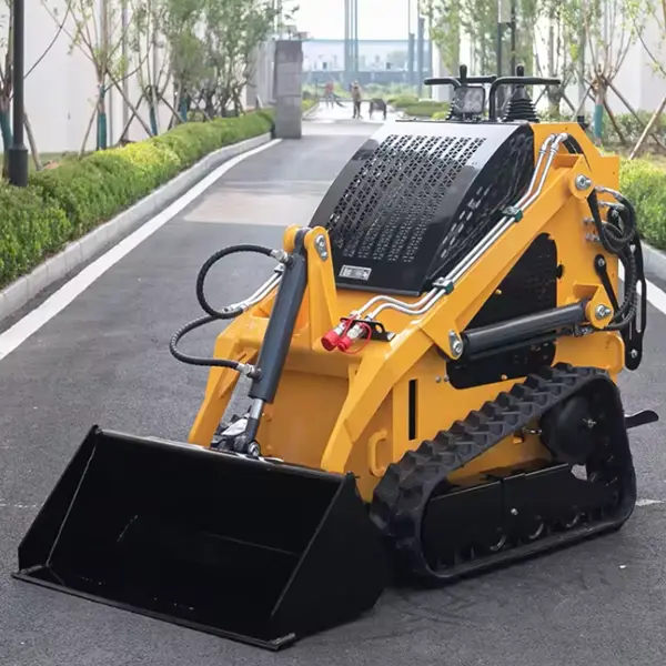 The Compact Skid Steer Loaders Front Mini Loader excels at moving pallets and inventory in narrow storage aisles. Its compact height (≤2m) and zero-radius turning allow for efficient loading and unloading under low ceilings and within tight workshop corners.